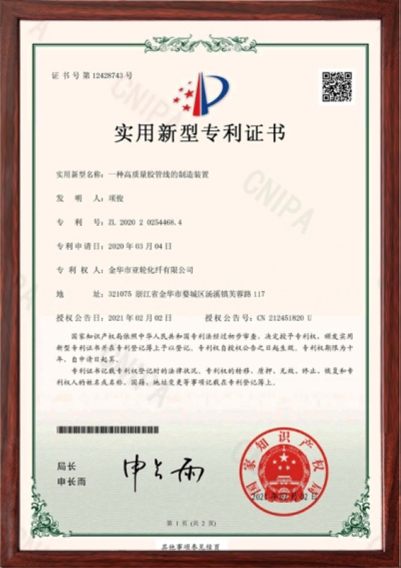 金华市亚轮化纤有限公司成立于1997年。是一家集科研、设计、生产的橡胶骨架材料专业厂家,是产品国家标准的制定者。公司坚持以“创新实现价值,专业造就品牌”的理念,主要产品有用于高、低压橡胶管、汽车刹车管、汽车空调管的涤纶浸胶管线、涤纶定型线、轮胎用尼龙和芳纶单根帘线。目前本厂产品已覆盖全国省市并远销欧美、东南亚等,深受广大用户的青睐和信赖。